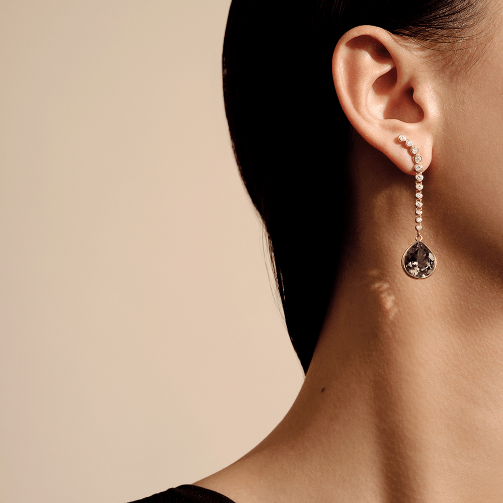 Heritage Earrings with Briolette Ear Pendants Champagne Quartz